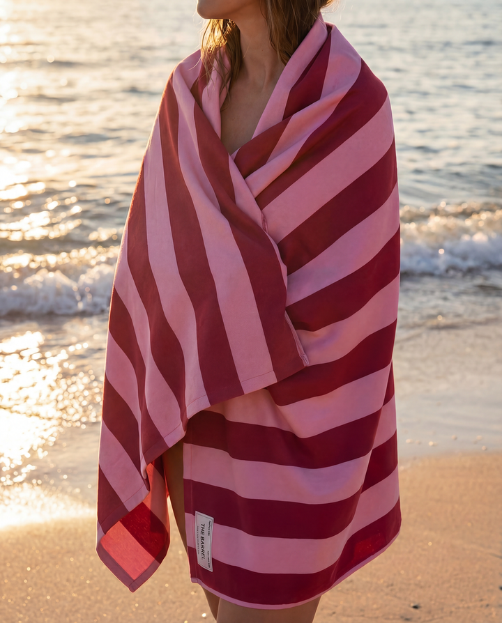 With its sleek finish and vibrant colorways, The Barrel Towel folds effortlessly into your bag and unfolds into a statement piece on the sand. Inspired by retro summer energy and modern lifestyle aesthetics, it’s made for bold days, relaxed moments, and effortless style.